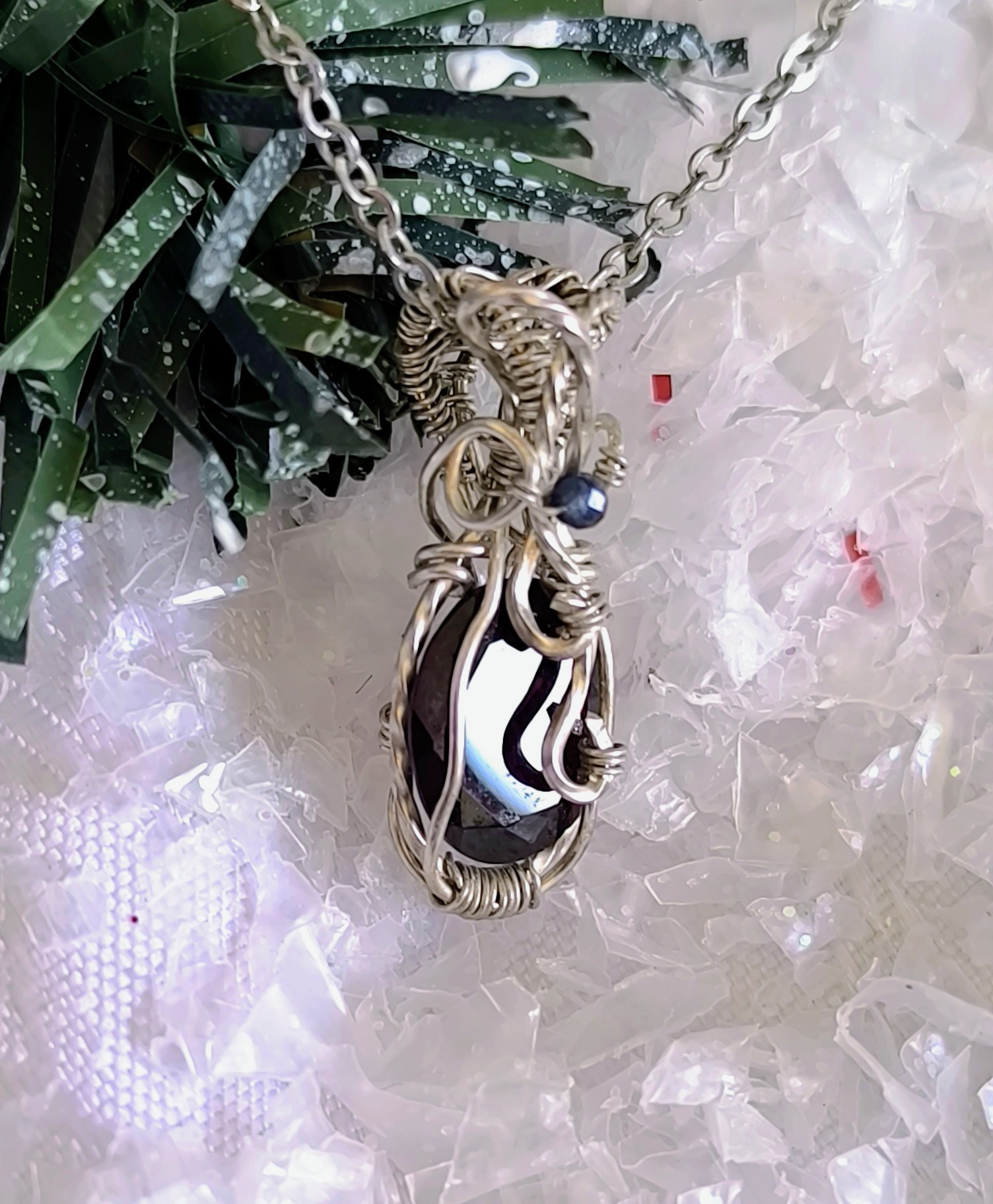 Colgante mini artesanal en Plata de Ley 925 con Granate natural y cuenta de Zafiro.